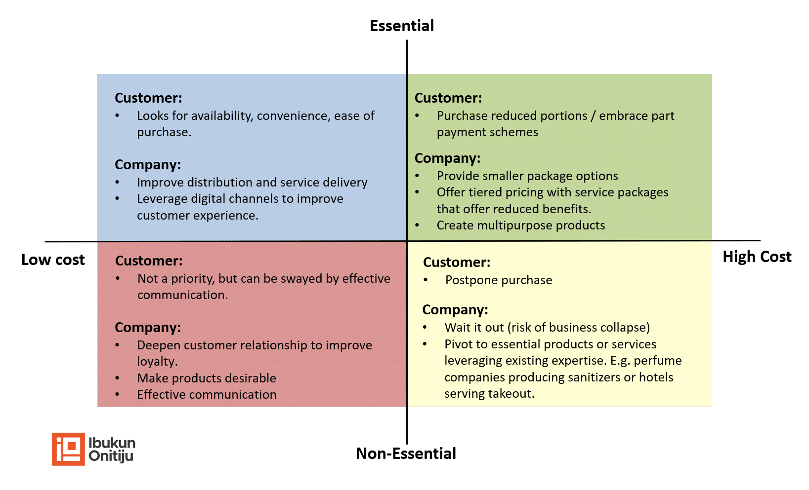 I created a 2×2 matrix to illustrate how businesses and customers are reacting depending on the importance of the product or service and cost. This new role also means digital marketing strategies and tools must become better aligned to business objectives.