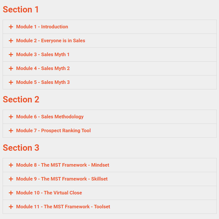 Reason 1: You’re busy now and later may be better – We both know that there will be no perfect time, so unless you are going through a really bad situation right now that is a lot worse than you not making sales and under-performing at work, then you can do this later. If not, the best time is now. The training is about 1 hour long (broken into 11 short modules of a few minutes each. In 1 hour, your sales performance story will change.
